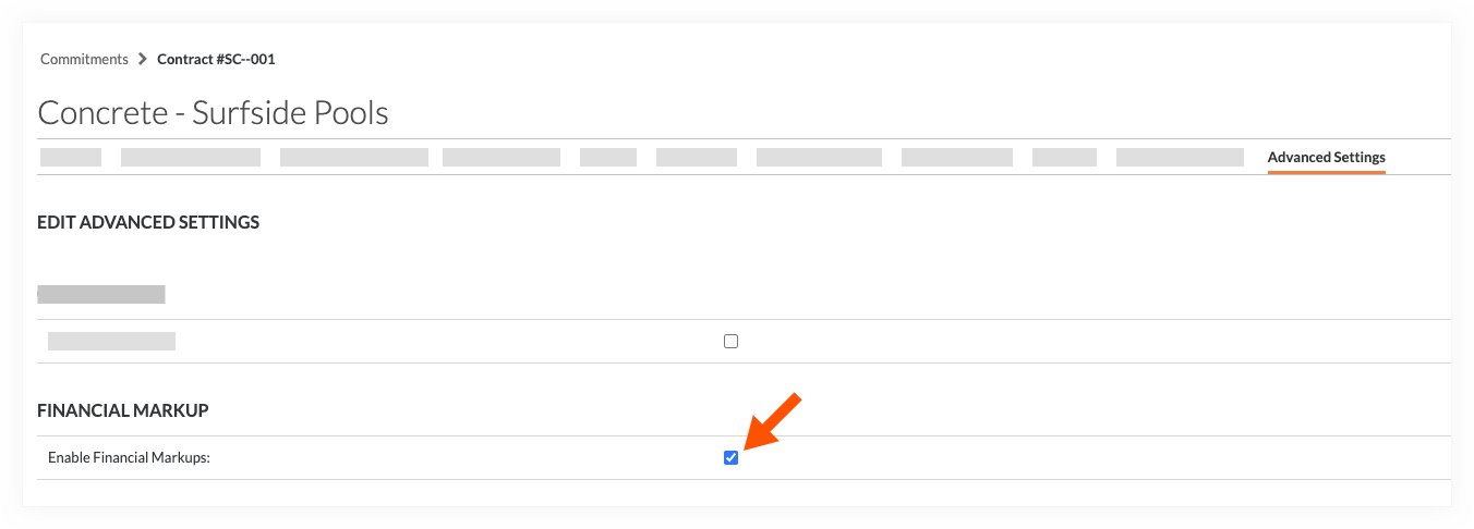 - Under the Financial Markup section, click the Enable Financial Markups checkbox.